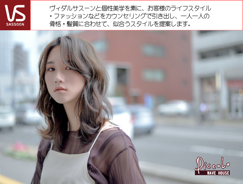 ヴィダルサスーンと個性美学を素に、お客様のライフスタイル・ファッションなどをカウンセリングで引き出し、一人一人の骨格・髪質に合わせて、似合うスタイルを提案します。